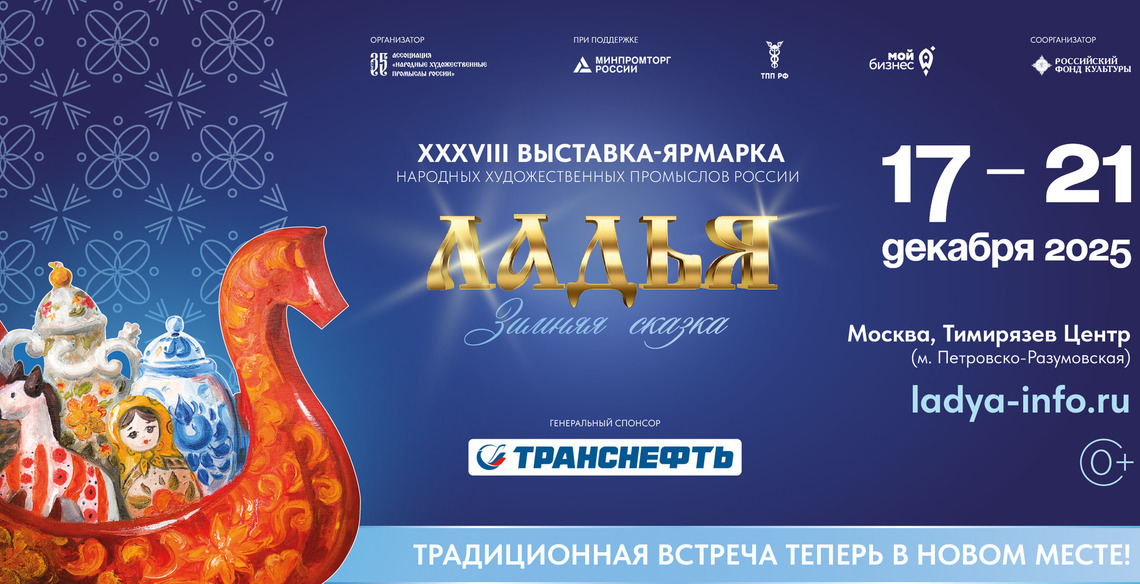 С 17 по 21 декабря 2025 года в ВК «ТИМИРЯЗЕВ ЦЕНТР» проводится крупнейшая в стране Выставка-ярмарка народных художественных промыслов «ЛАДЬЯ. Зимняя сказка — 2025».